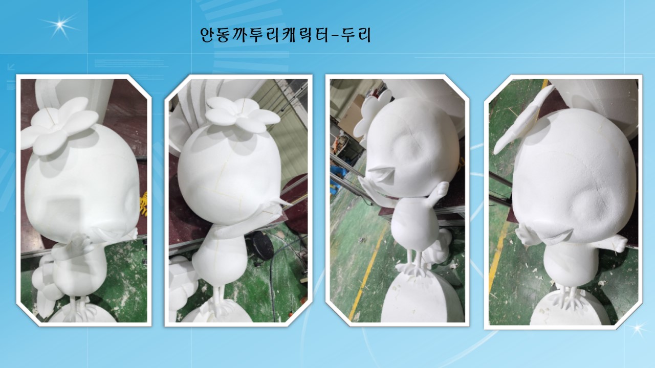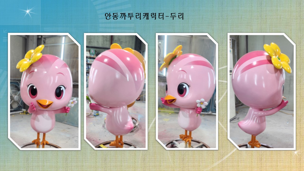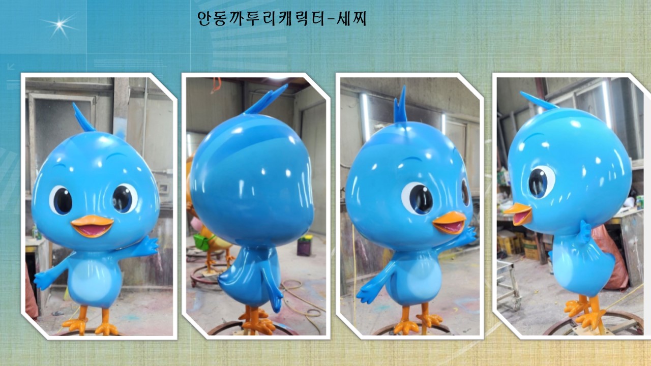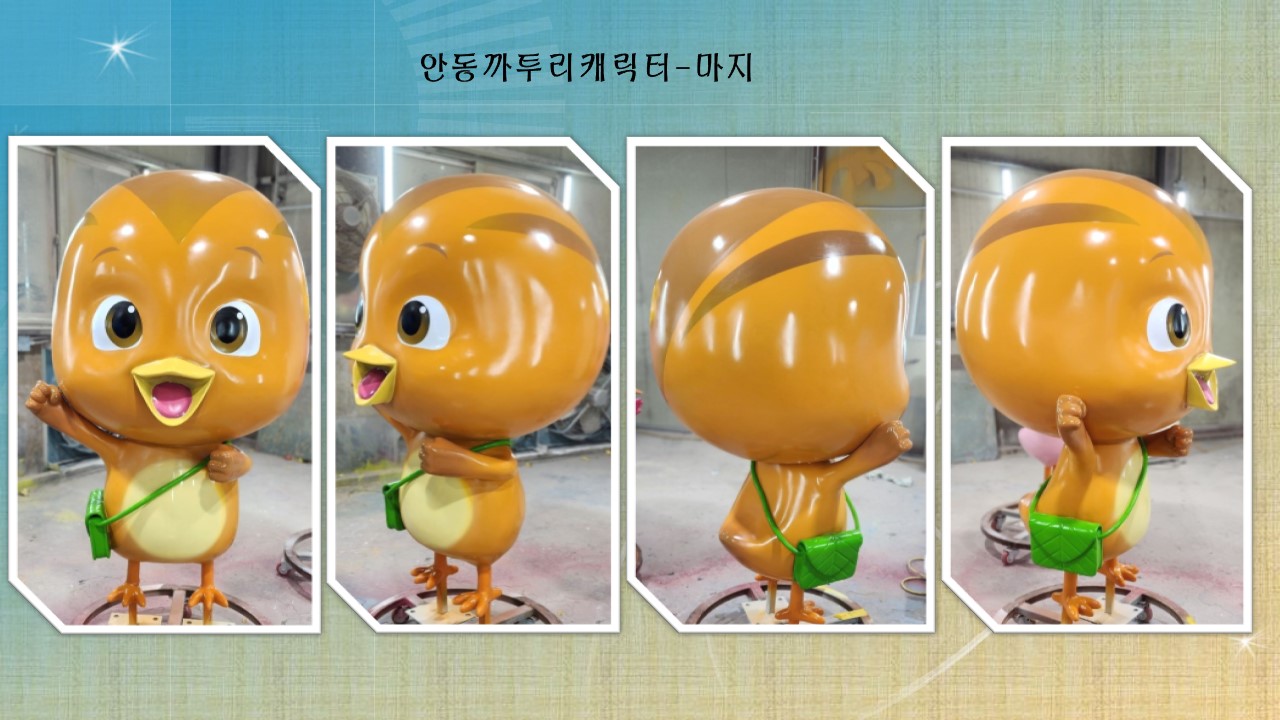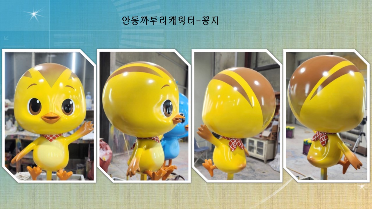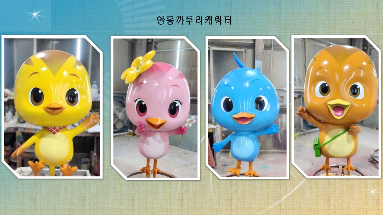 안동시는 문화콘텐츠 엄마까투리애니메이션을 토대로 공식 안동시캐릭터로서 많은 홍보와 안동시를 대표하는 캐릭터로 자리매김하였습니다. 이번에는 보다 많은 시민들의 참여와 홍보를 위하여 안동까투리상상놀이터를 만들었습니다. 저희는 그곳을 빛나게할 까투리 형제들을 FRP캐릭터로 만들어 설치하였습니다.