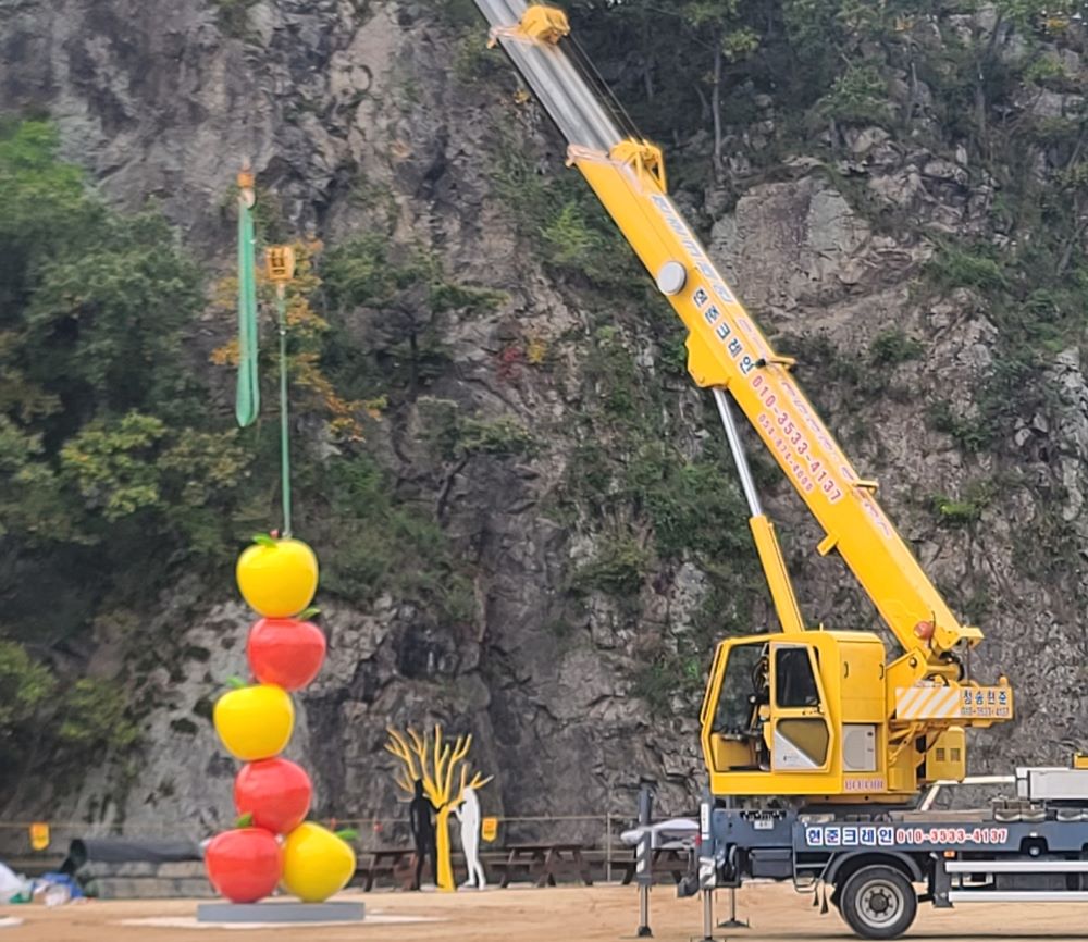사과축제를 위한 FRP사과조형물 작업하였습니다.